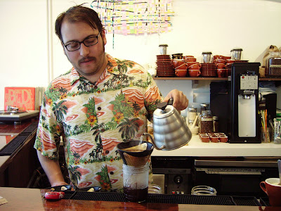 | COURIER COFFEE, STAFF USING A GOLD FILTER |